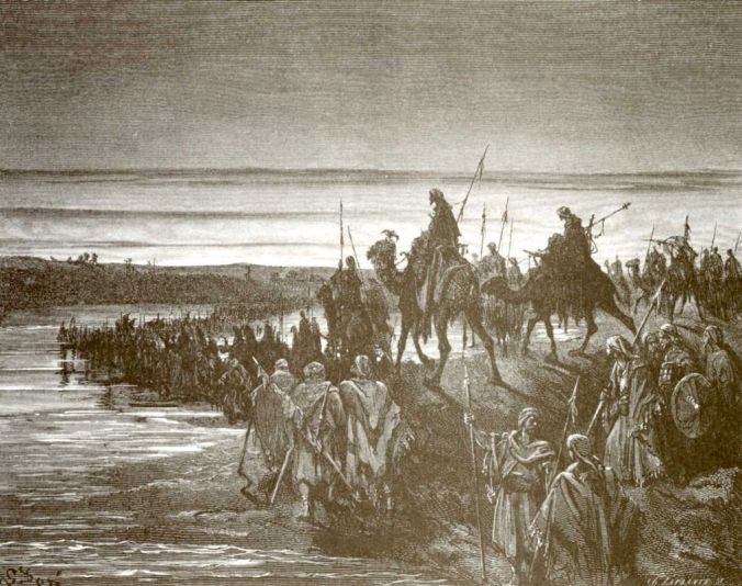 4:22 tell them, ‘Israel crossed [thus making a break with the past] the Jordan [a river] on dry ground [emphasizes miraculous nature of the event].’