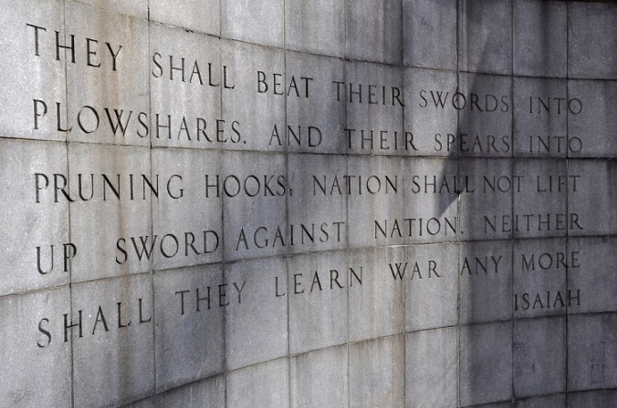 Note: Isaiah 2:4 is inscribed on the walls of the United Nations Plaza in New York.