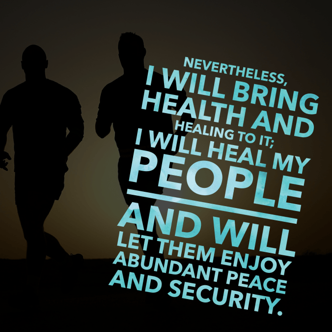 33:6 “‘Nevertheless [prophecy of future deliverance and restoration of the nation following Babylonian captivity…], I will bring health and healing to it; I will heal my people and will let them enjoy abundant peace and security.