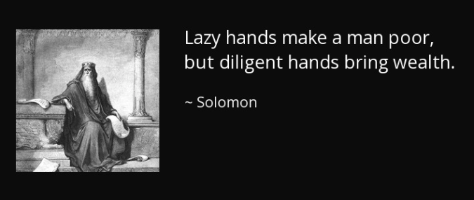 10:4 [note two work ethics] [1] Lazy hands make a man poor, but [2] diligent hands bring wealth.