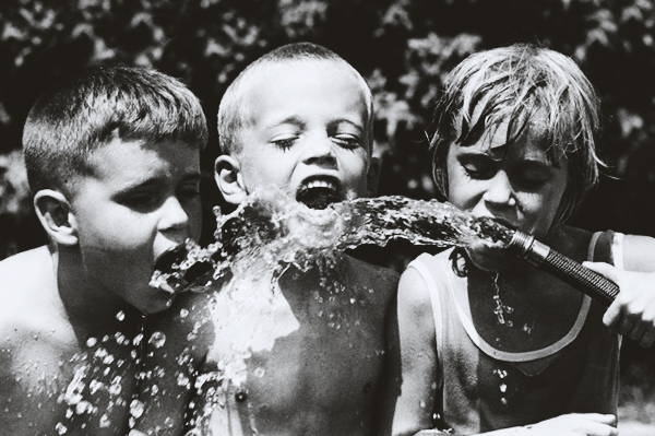 We drank water from the garden hose and not from a bottle.